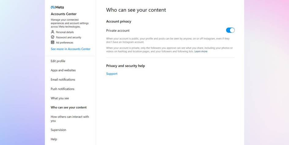 Jika Anda mencurigai ada seseorang yang stalking anda melalui Instagram, hal yan perlu anda lakukan yaitu meninjau pengaturan privasi Anda. Pilih tiga bilah di sudut kiri bawah, dan navigasikan ke Settings > Who can see your content. Di sini Anda dapat memeriksa apakah akun Anda disetel ke “pribadi” atau tidak.