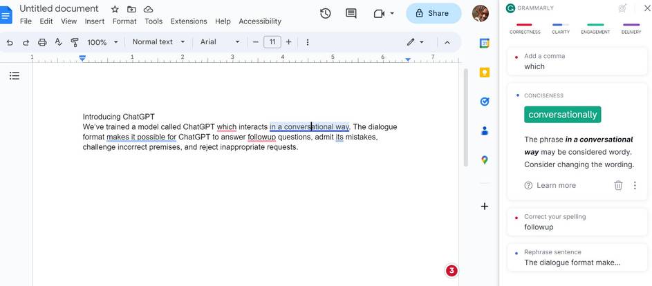 Like other Chrome extensions, once you install Grammarly, you can access it on any web page. It provides real-time suggestions that you can use to rephrase sentences for better understanding.