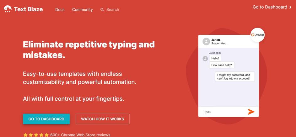 Text Blaze is one of the best AI-powered online tools that creates text templates for you. It handles routine tasks such as greetings, responses, images, signatures, and links.
