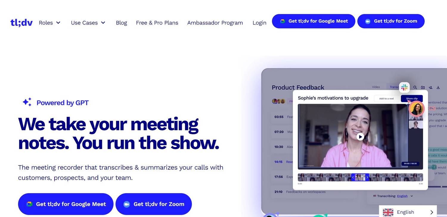 The tl;dv Chrome extension is a great assistant for Google Meet and Zoom meetings. It can record and transcribe online meetings, capturing calls and presentations with high-quality audio and video.